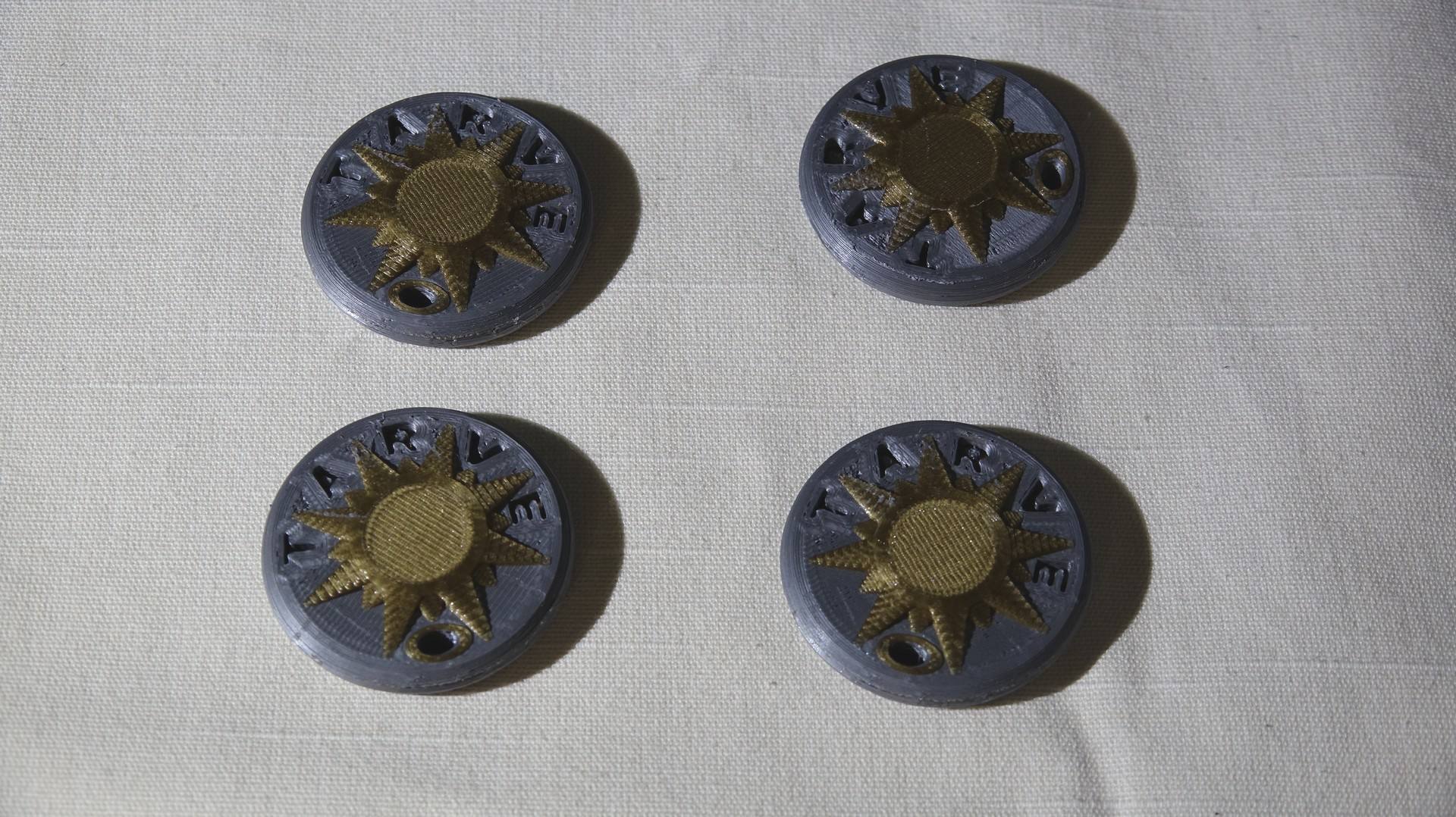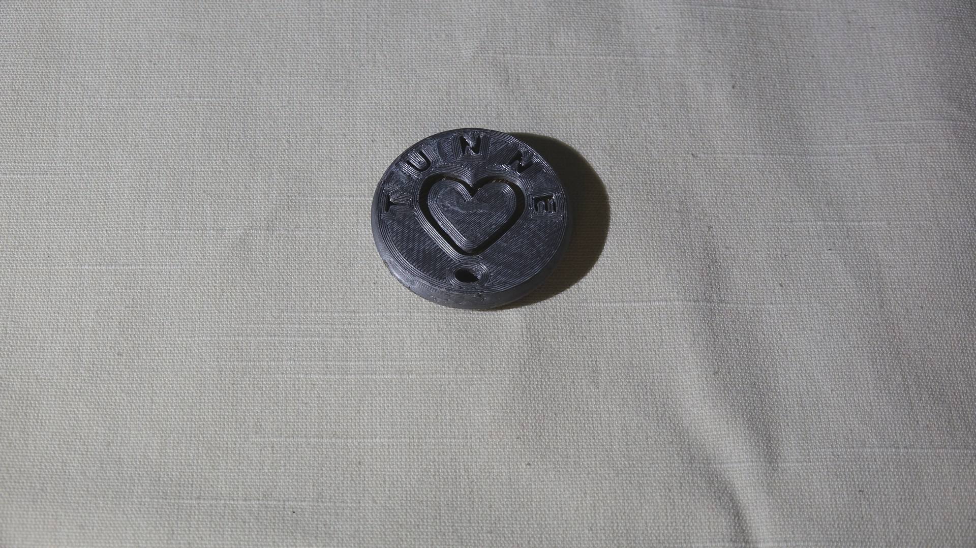 PLA-muovista 3d-tulostettu koriste. Tulostuksen epäsäännöllisyyttä ja jäämiä saattaa ilmetä kappaleessa. Pieniä irtoavia 3d-tulostinlangan jäämiä saattaa ilmetä.