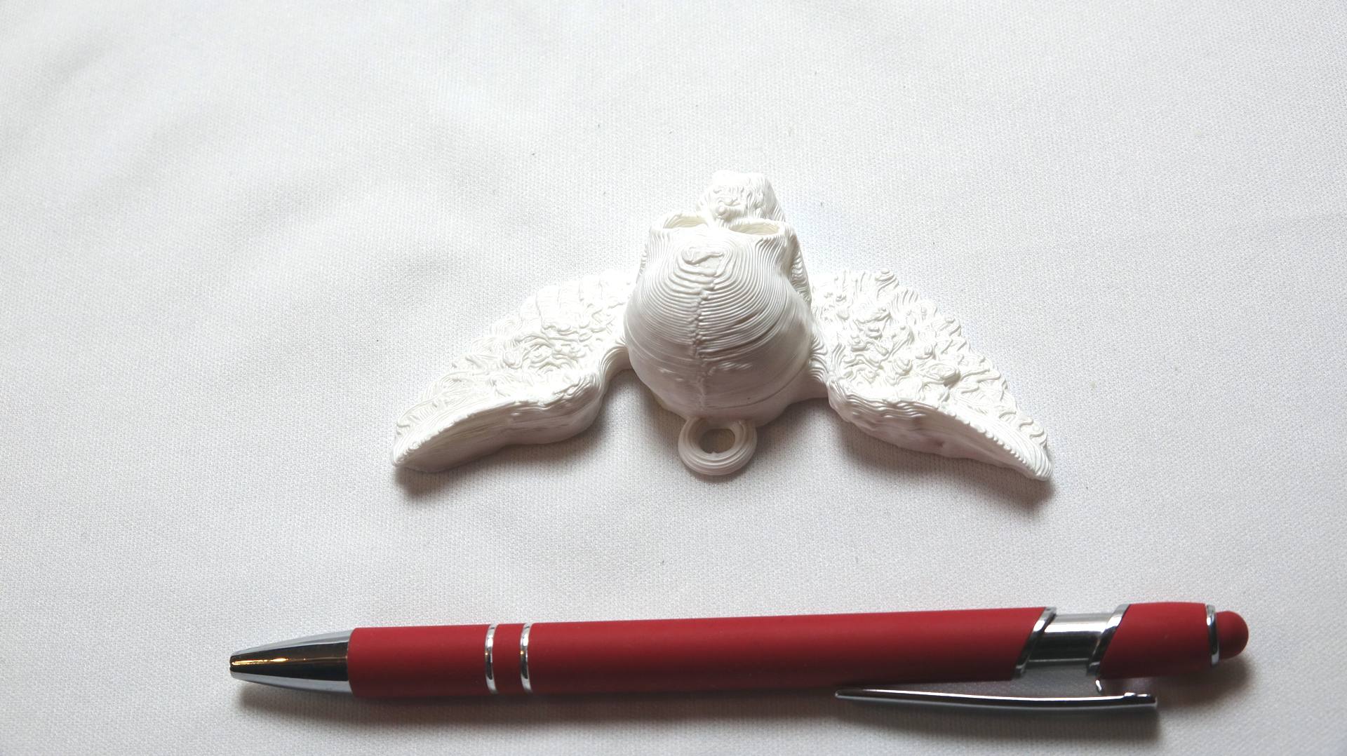 PLA-muovista 3d tulostettu koriste, jossa kolo ripustamiseen. Koristeen pohjapuoli on melko sileä, johon voi liimata esimerkiksi kaksipuolisen– tai magneettiteipin kiinnitykseen. Lisäämällä hieman liimaa teipin ja koristeen väliin on liimapinnan pito pienestä pinnan epätasaisuudesta johtuen parempi.