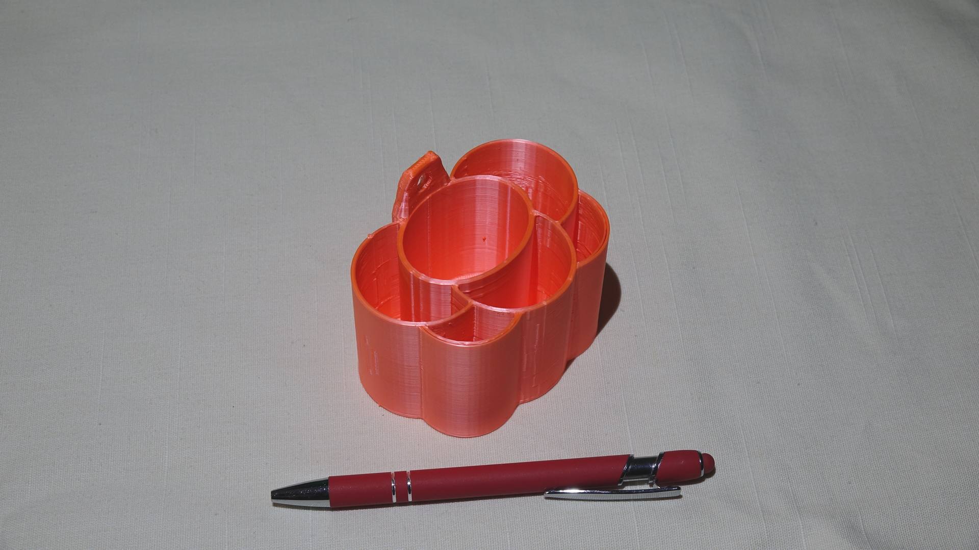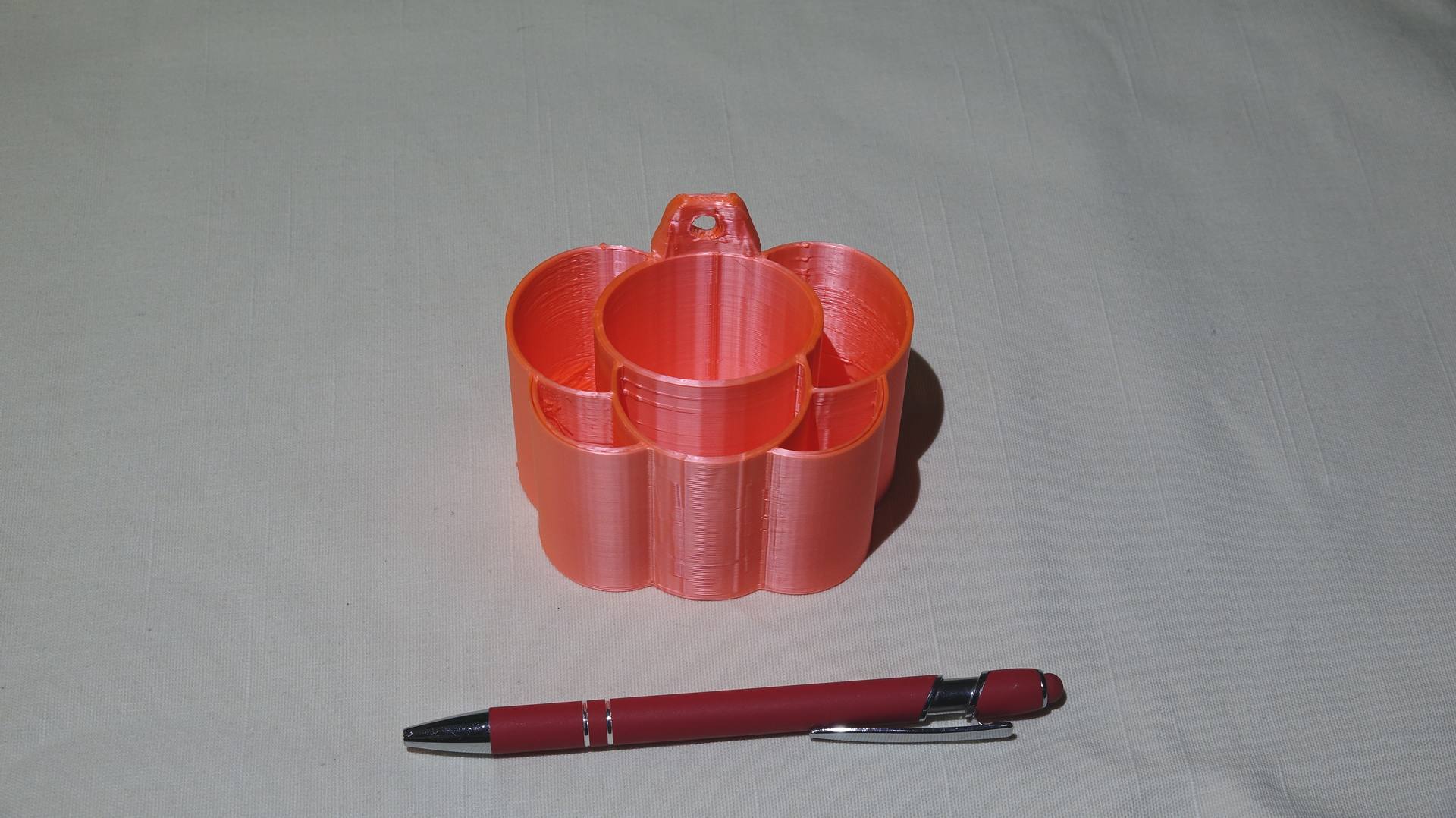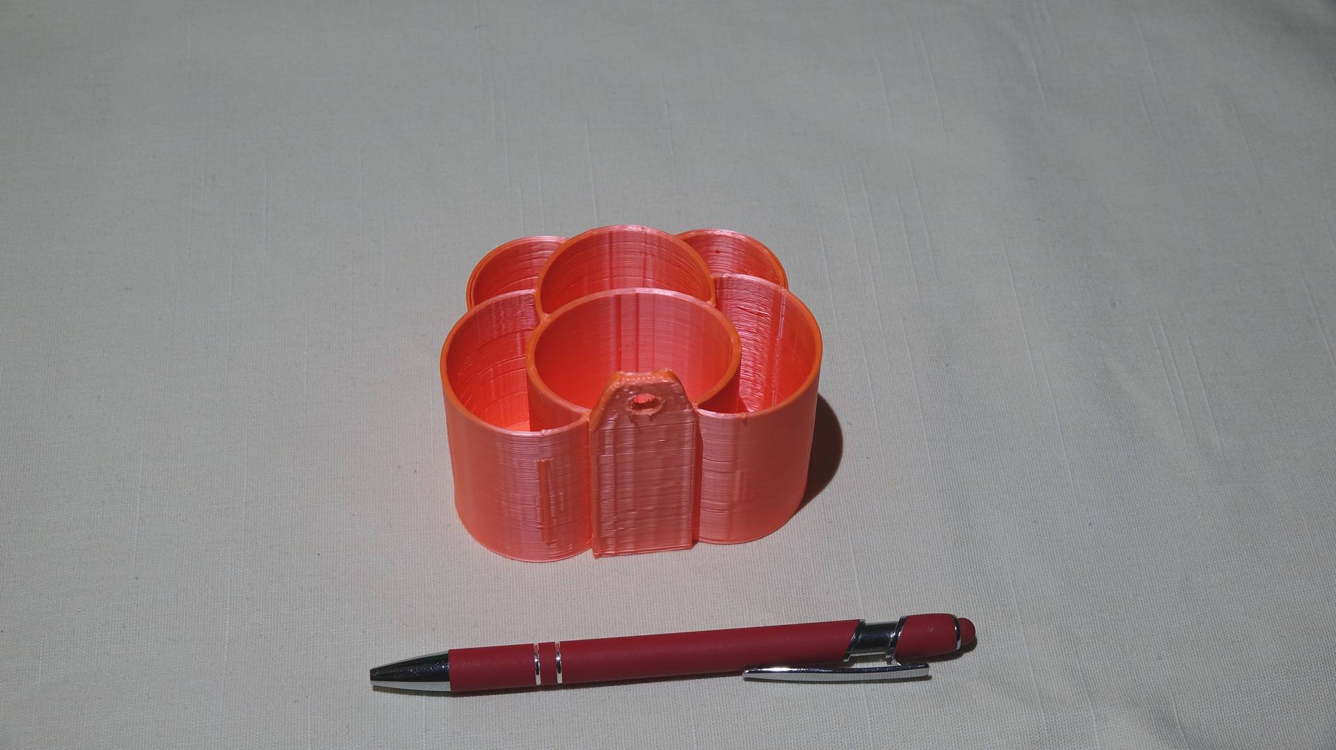 PLA-muovista 3d-tulostettu teline. Tuotteen pinta ei ole aivan sileä, tulostuksen epäsäännöllisyyttä ja jäämiä saattaa ilmetä kappaleessa. Pieniä irtoavia 3d-tulostinlangan jäämiä saattaa ilmetä.