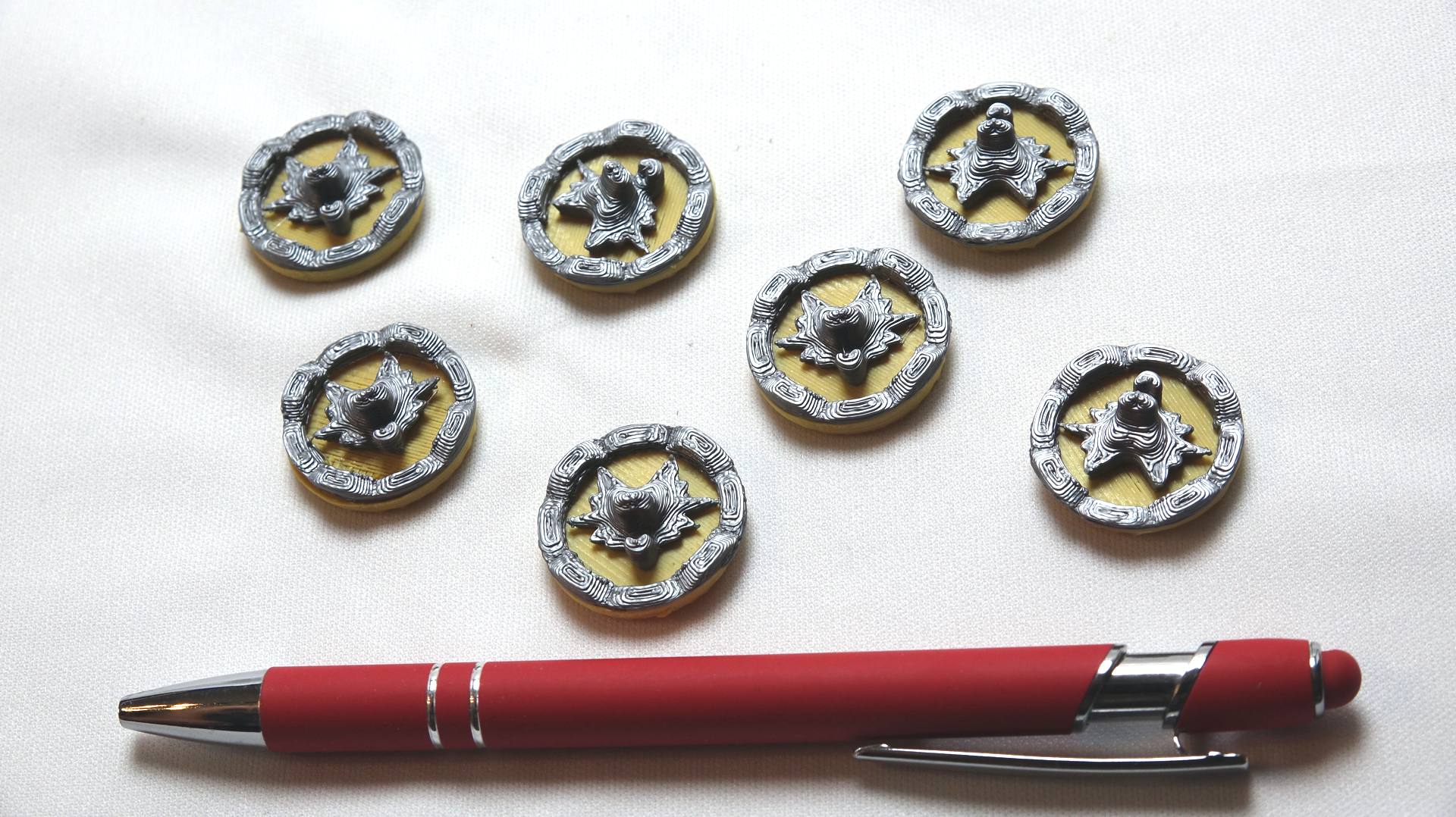 PLA-muovista 3d-tulostettu. Tulostuksen epäsäännöllisyyttä ja jäämiä saattaa ilmetä kappaleessa. Pieniä irtoavia 3d-tulostinlangan jäämiä saattaa ilmetä.